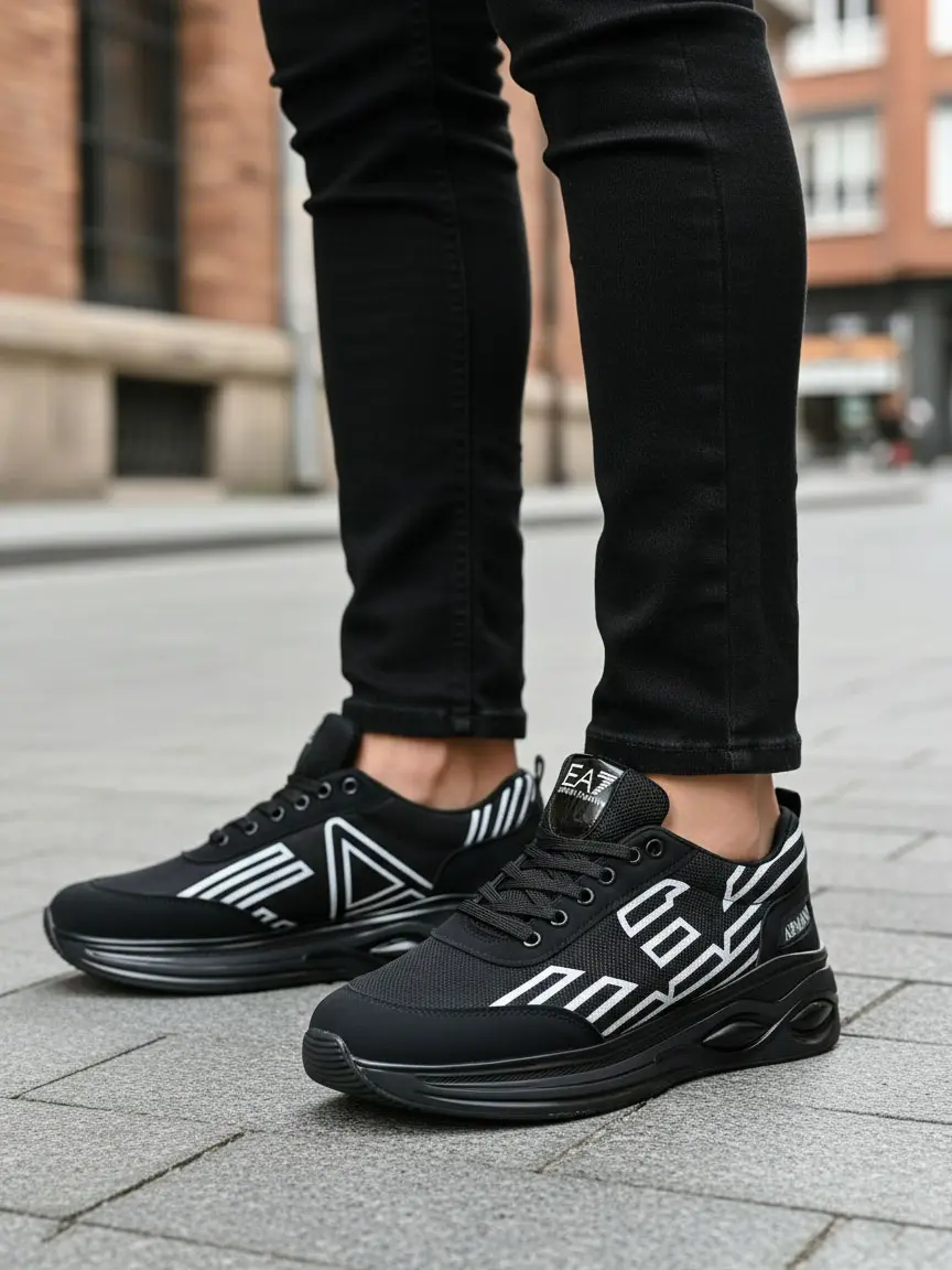 Emporio Armani’nin modern tasarım çizgilerini yansıtan siyah desenli erkek spor ayakkabı, şehir hayatına şıklık ve dinamizm katıyor. Hafif yapısı, nefes alabilen kumaşı ve ergonomik tabanı ile gün boyu rahatlık sunar. Dayanıklı dış taban kaymaz özelliği sayesinde her zeminde güvenli bir adım sağlar. Siyah üzerine beyaz geometrik desenleri, sportif tarzınızı modern bir dokunuşla öne çıkarır.